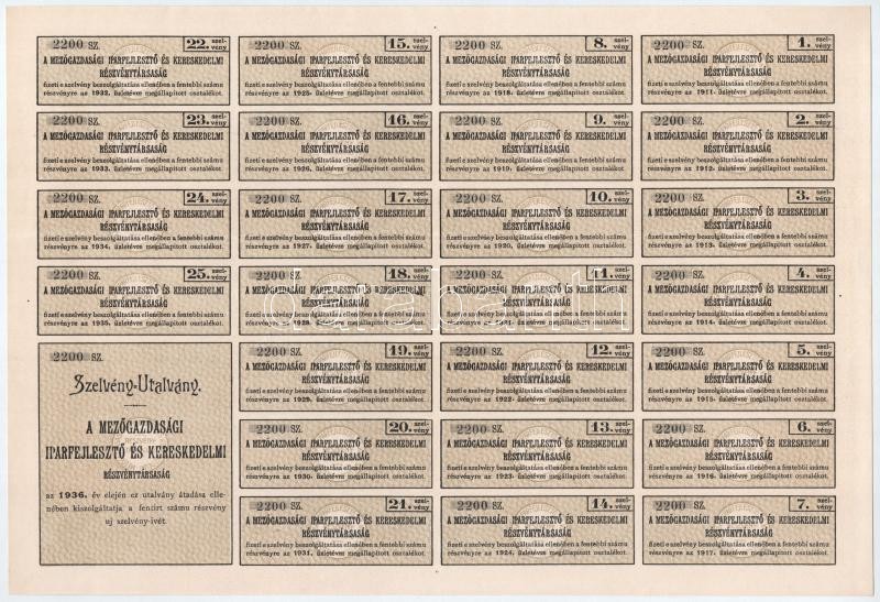 Déva 1910. "Mezőgazdasági Iparfejlesztő és Kereskedelmi Részvénytársaság" részvénye 200K-ról, szelvényekkel, szárazpecséttel és felülbélyegzéssel T:I- / Hungary / Déva 1910. "Agricultural Industry Development and Trade Share Company" share about 200 Kronen, with coupons, embossed stamp and overprints C:AU