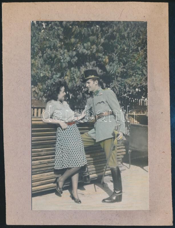 1930 Katonatiszt udvarlása, színezett fotó, kartonra ragasztva, 12,5×8... https://www.darabanth.com/hu/380-Gyorsarveres/380.0/Fotomuveszet/Foto~20/1930-Katonatiszt-udvarlasa-szinezett-foto-kartonra-ragasztva-12-5C3978-cm~II2254182