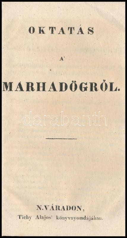 Leírás: cca 1860 Oktatás a marhadögről, készült: Tichy Alajos könyvnyomdájában, Nagyváradon, 32p