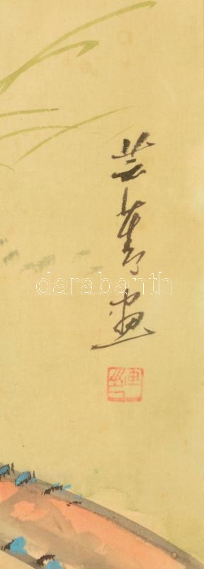 Leírás: Jelzett kínai cicás akvarell, üvegezett keretben, 31×69 cm