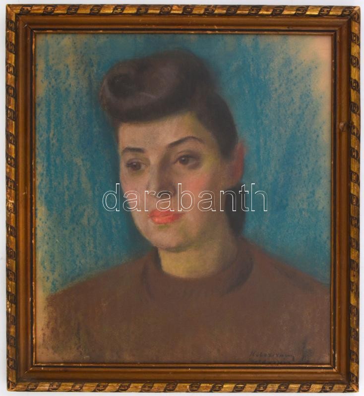 Leírás: Moldován István (1911-2000): Fiatal lány portréja. Pasztell, karton, jelzett (Kolozsváry Moldován), üvegezett fa keretben, 45×40,5 cm