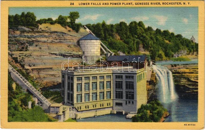 Rochester (New York), Genesee river, lower fally and power plant https://www.darabanth.com/hu/381-Gyorsarveres/381.0/Kepeslapok/Amerikai-Egyesult-Allamok~1500016/Rochester-New-York-Genesee-river-lower-fally-and-power-plant~II2259819