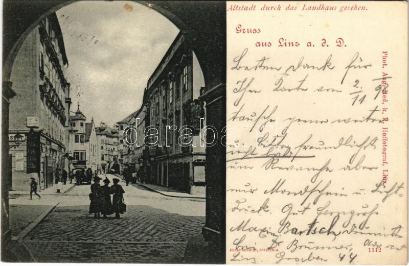 1899 (Vorläufer) Linz a.d. D., Altstadt durch das Landhaus gesehen https://www.darabanth.com/hu/381-Gyorsarveres/381.0/Kepeslapok/Ausztria~1500017/1899-Vorlaufer-Linz-ad-D-Altstadt-durch-das-Landhaus-gesehen~II2259494