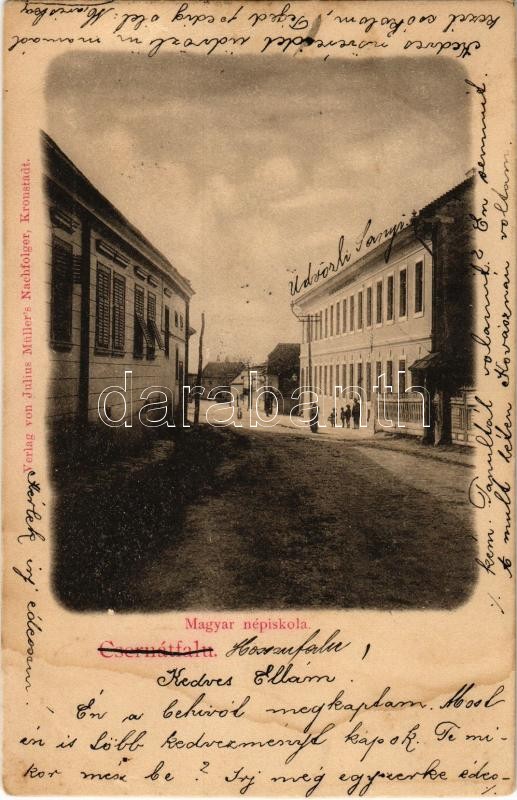 Leírás: 1903 Csernátfalu, Cernat, Cernatu (Négyfalu, Sacele); Magyar népiskola / Hungarian school (fl)