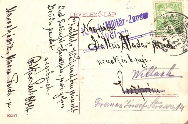 Leírás: Maroshévíz, Toplita; utcakép. Walter Ede kiadása / street view + K.u.K. Militär-Zensur Villach (EK)