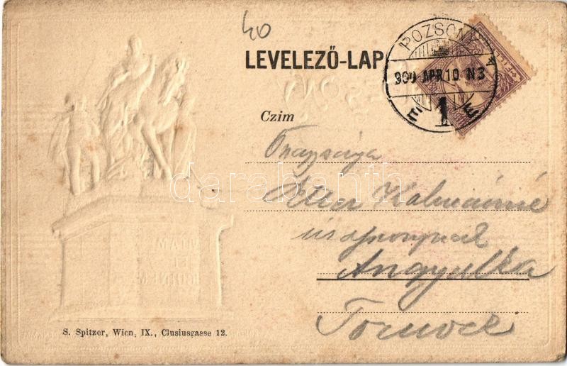 Leírás: 1900 Pozsony, Pressburg, Bratislava; Mária Terézia koronázási emlékmű / Maria Theresia-Denkmal / Maria Theresa monument. Emb. (EB)