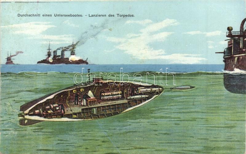Durchschnitt eines Unterseebootes, Lanzieren des Torpedos / WWI K.u.K.... https://www.darabanth.com/hu/381-Gyorsarveres/381.0/Kepeslapok/Hadihajo~1500051/Durchschnitt-eines-Unterseebootes-Lanzieren-des-Torpedos-WWI-KuK-Kriegsmarine-submarine-launch~II1967433