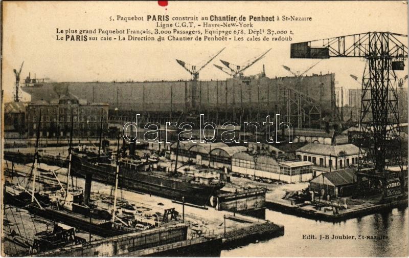 Paquebot Paris construit au Chantier de Penhoet a St. Nazaire Ligne C.... https://www.darabanth.com/hu/381-Gyorsarveres/381.0/Kepeslapok/Hajo~1500052/Paquebot-Paris-construit-au-Chantier-de-Penhoet-a-St-Nazaire-Ligne-CGT-Havre-New-York-Construc~II2194627