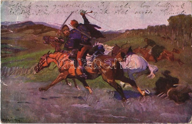 1916 Kozákhalál Máramarosban. A M. kir. honvédelmi minisztérium hadsegélyező hivatala kiadása / WWI Austro-Hungarian K.u.K. military propaganda art postcard, charity fund s: Juszkó (EK)