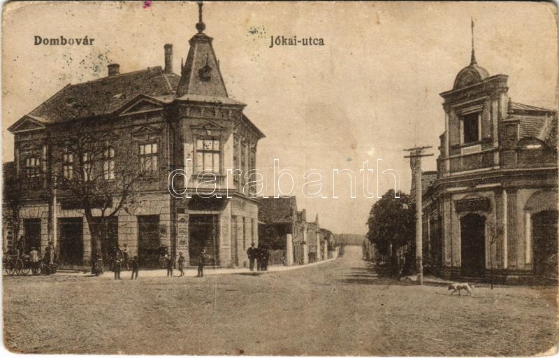 Leírás: 1918 Dombóvár, Jókai utca, üzletek (kopott sarkak / worn corners)
