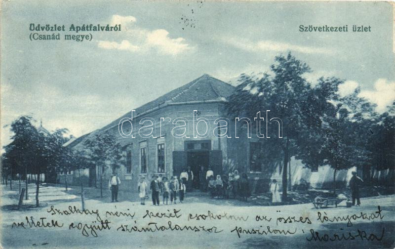 Leírás: Apátfalva, Szövetkezeti üzlet, kiadja az Apátfalvai Keresztény fogyasztási szövetkezet
