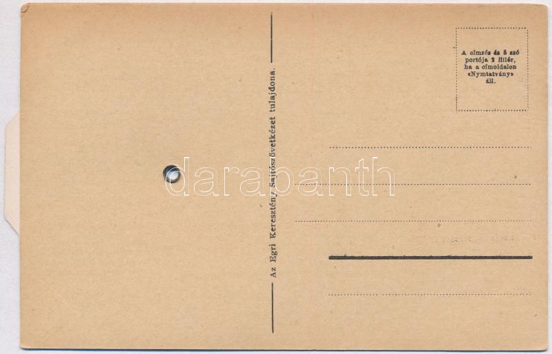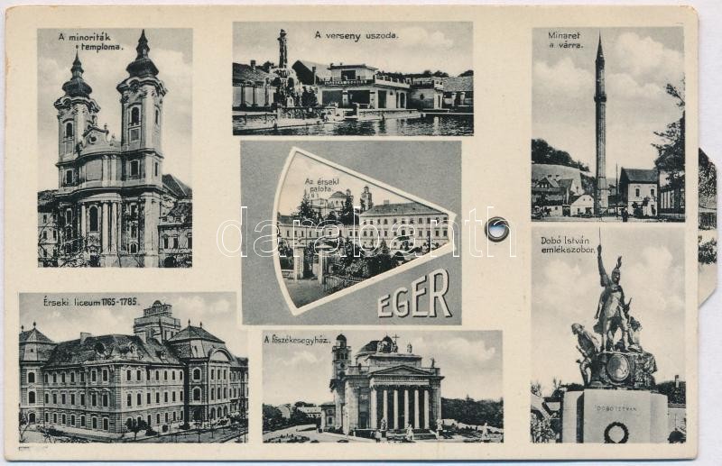 Eger. Mechanikus forgatható képeslap / mechanical rotatable postcard https://www.darabanth.com/hu/381-Gyorsarveres/381.0/Kepeslapok/Magyarorszag~1500004/Eger-Mechanikus-forgathato-kepeslap-mechanical-rotatable-postcard~II1776825