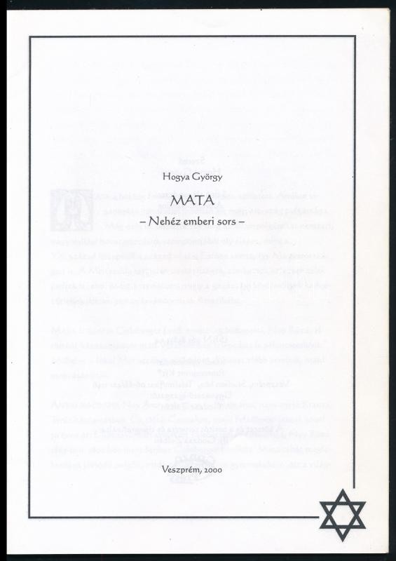 Hogya György: Mata. - Nehéz emberi sors. - Veszprém, 2000., Pannonprin... https://www.darabanth.com/hu/381-Gyorsarveres/381.0/Konyvek/Konyvek-Judaika~1000012/Hogya-Gyorgy-Mata-Nehez-emberi-sors-Veszprem-2000-Pannonprint-Kiadoi-papirkotes~II2207999