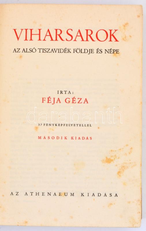 Féja Géza: Viharsarok. Az Alsó Tiszavidék földje és népe. Második kiad... https://www.darabanth.com/hu/381-Gyorsarveres/381.0/Konyvek/Konyvek-Utazas-helytortenet~1000019/Feja-Geza-Viharsarok-Az-Also-Tiszavidek-foldje-es-nepe-Masodik-kiadas-Szerk-Sarkozi~II2193474