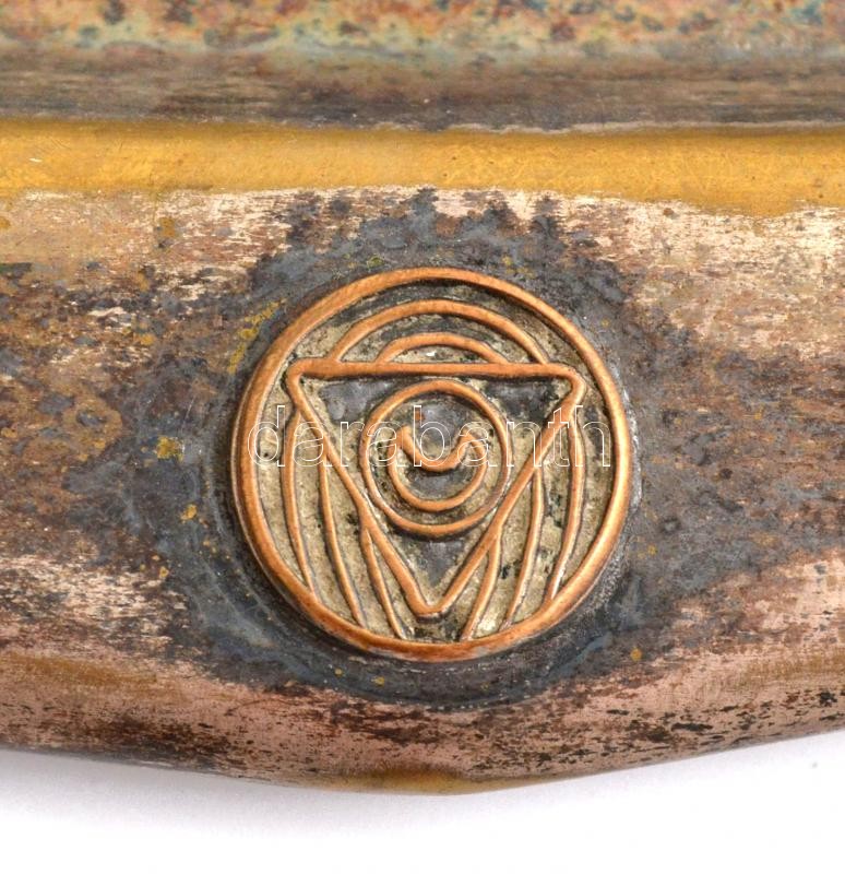 Régi füles tálca, fém, kopott, 62×24 cm