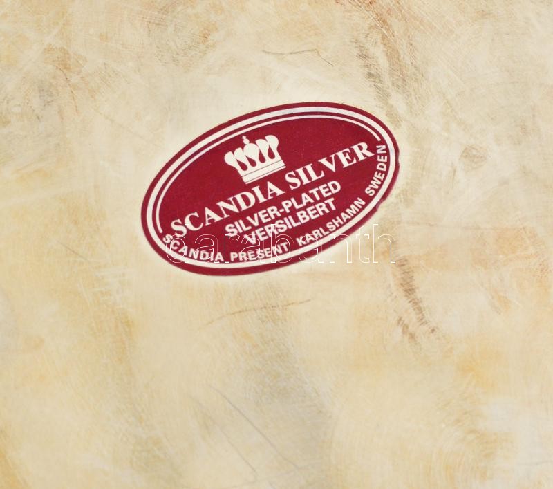 Leírás: Scandia ezüstözött tálca, enyhén kopottas állapotban, 28x28 cm