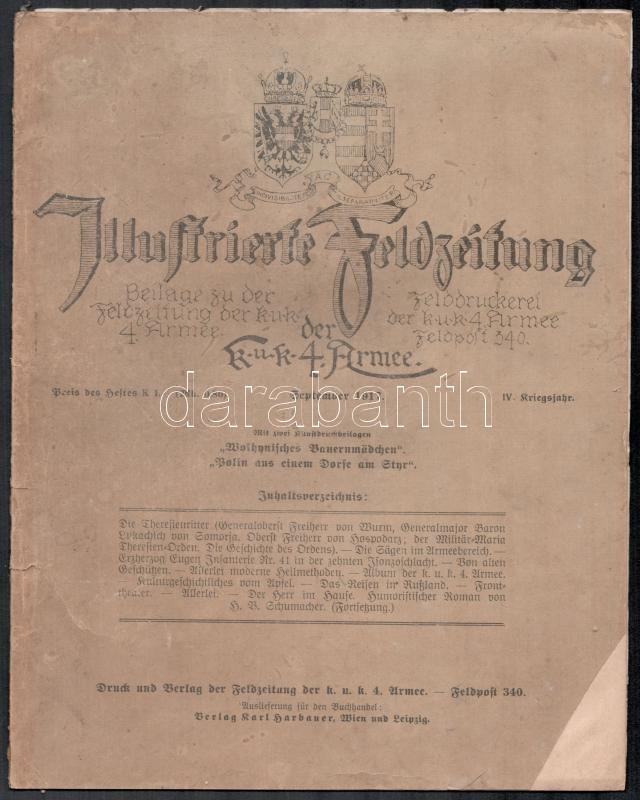 1917. Illustrierte Feldzeitung, német nyelven + 1921 Képes Krónika III. évfolyamának 14. száma + 1928 Bp., Ludovikás Levente c. újság VII. évfolyamának I. száma