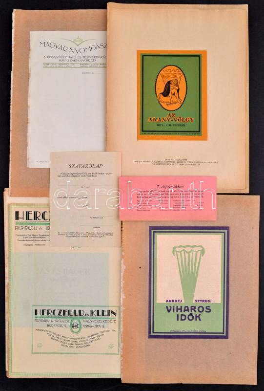 Leírás: 1922 Magyar Nyomdászat c. újság 9 db nyomtatvány és reklám melléklete