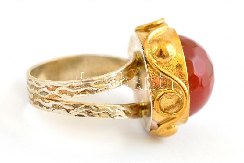 Leírás: Aranyozott ezüst(Ag) gyűrű, karneollal, jelzett, méret: 56, bruttó: 10,17 g