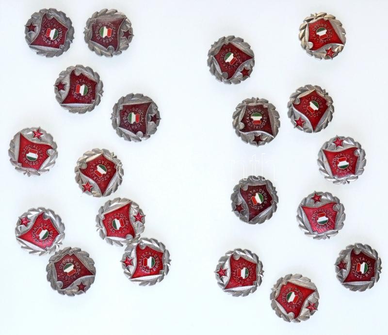 Leírás: 20db-os "Szocialista Brigád" jelvény tétel, ezüstözött koszorú (27mm) T:1-,2