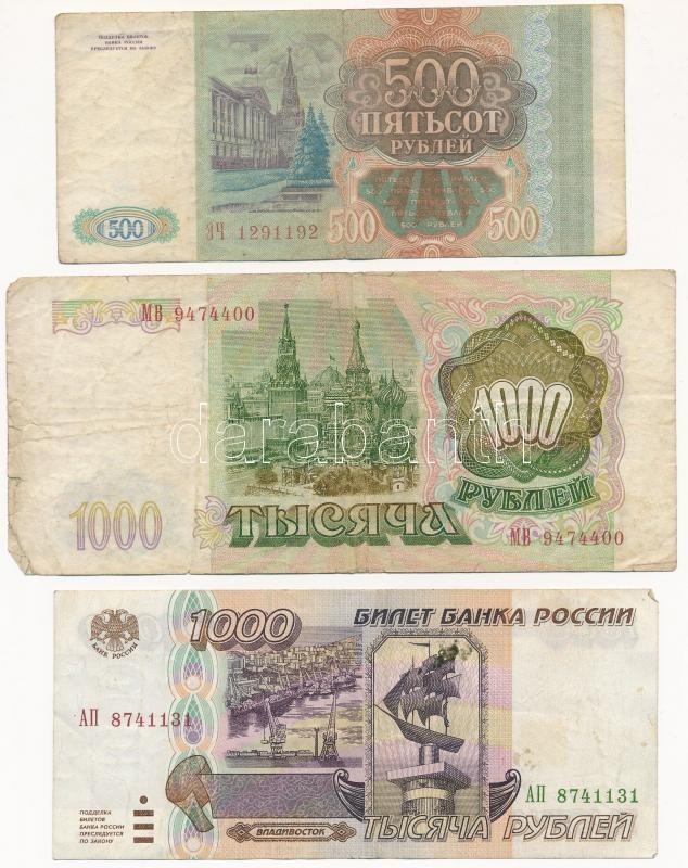 Oroszország 1993. 500R + 1000R + 1995. 1000R T:III,III- foltos