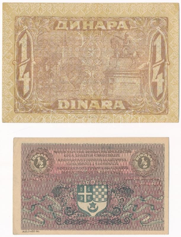 Kingdom of the Serbs, Croats and Slovenes 1919. 1/2 Dinara + 1921. 25 Para / 1/4 Dinara C:XF,F fine paper