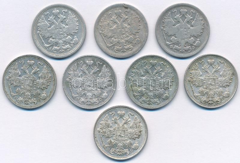 Leírás: Orosz Birodalom 1900-1916. 15k Ag (8db, 7xklf) T:2-3