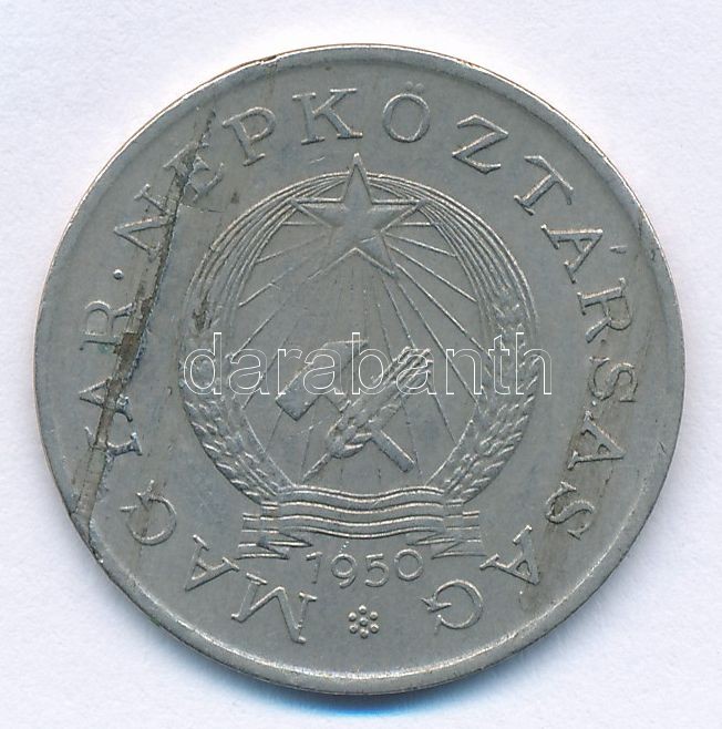 Leírás: 1950. 2Ft Cu-Ni technológiai hibás veret (lapkahiba) T:2,2-