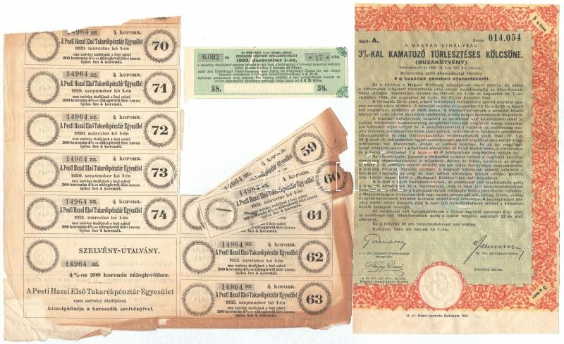 1882-1944. Vegyes részvény, kötvény, sorsjegykölcsön és szelvény tétel, közte 1944. Budapest "Búzakötvény" szelvények nélkül, többsége rossz állapotban T:III- ázott