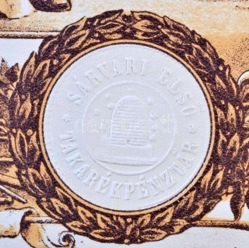 Sárvár 1926. "Sárvári Első Takarékpénztár" névre szóló részvénye 35P-ről, szelvényekkel, szárazpecséttel T:I-,II / Hungary / Sárvár 1926. "Sárvári Első Takarékpénztár" savings bank's share with shareholder's name about 35 Pengő, with coupons and embossed stamp C:AU,XF