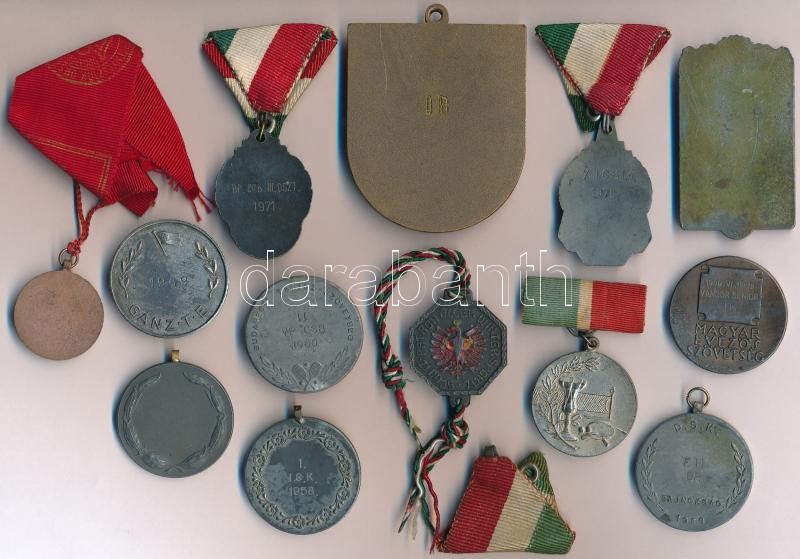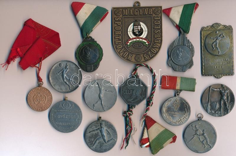 Leírás: 13db-os vegyes sportdíj tétel, közte Magyar Sportlövők Szövetsége - MSSZ - 1871" T:2