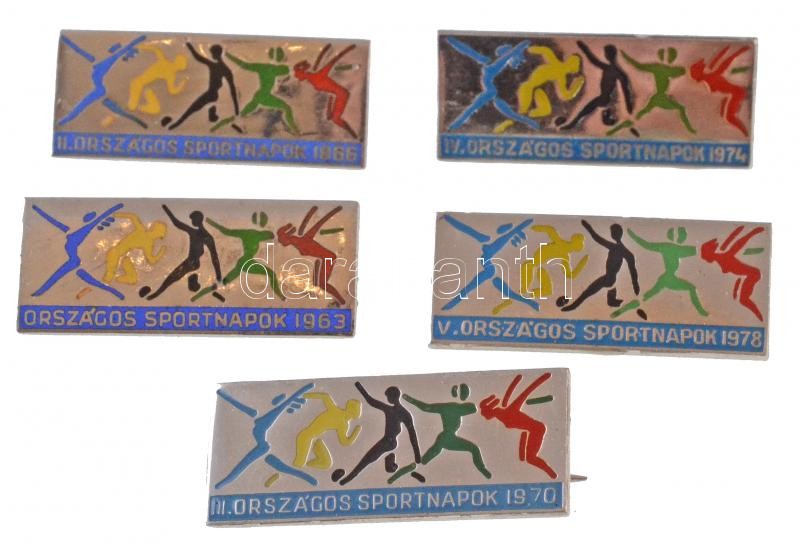 Leírás: 1963-1978. "Országos Sportnapok" 5xklf festett jelvény T:1,1-