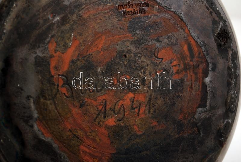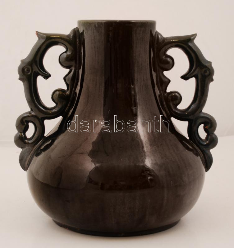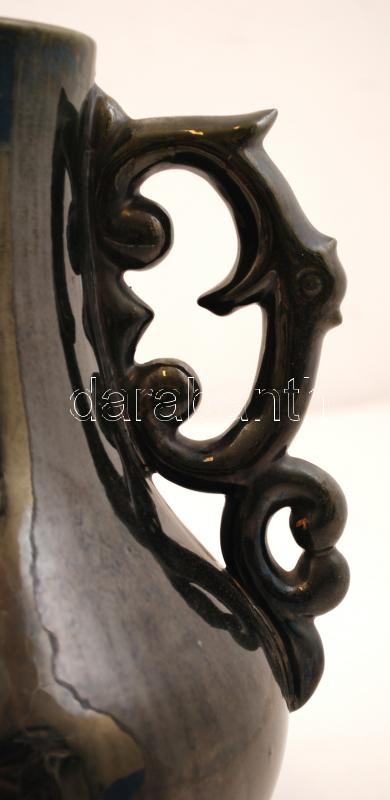 Leírás: Badár Erzsi, Simon Sándorné (1889-1985.): Füles váza, mázas kerámia, apró lepattanással, jelzett, m:28 cm