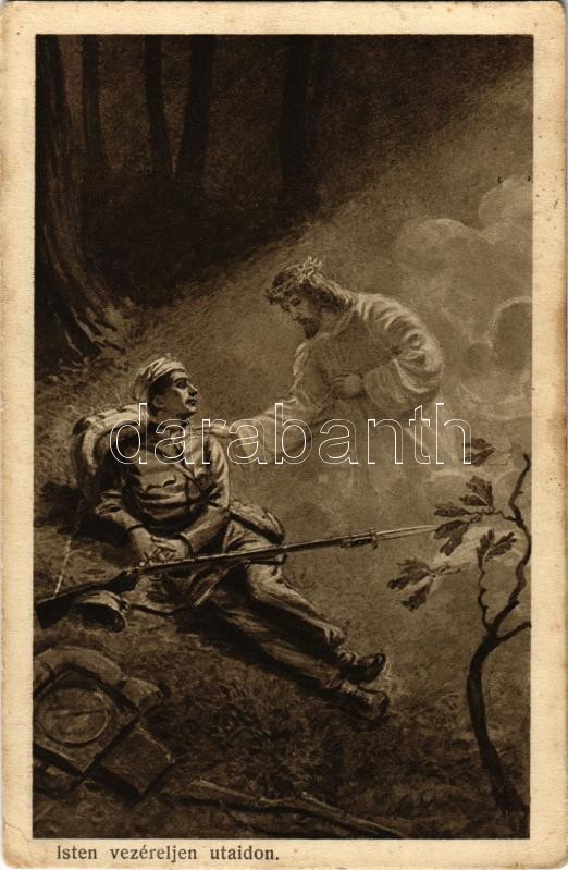 Leírás: 1916 Isten vezéreljen utaidon / WWI Austro-Hungarian K.u.K. military art postcard, injured soldier with Jesus. L&P 2062. (EK)