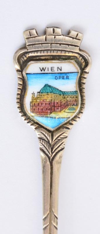 Leírás: Ezüst(Ag) zománcozott Wien kiskanál, jelzett, h: 10,5 cm, bruttó: 8,44 g