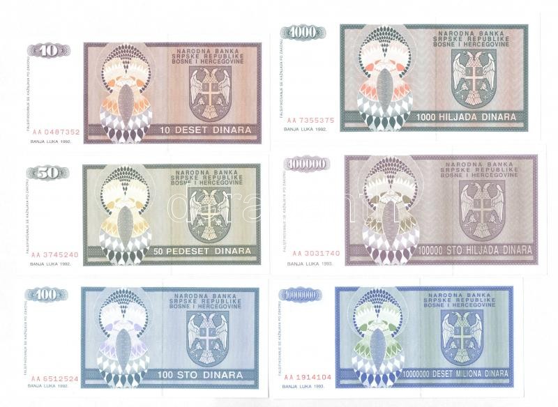 Bosznia-Hercegovina / Szerb Köztársaság / Banja Luka 1992. 10-1000D (4xklf) + 1993. 100.000D + 10.000.000D T:I