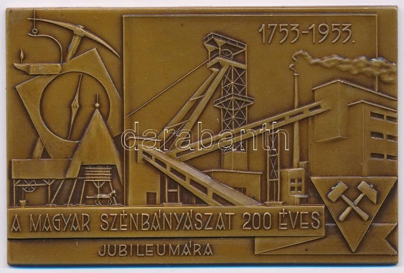 1953. "A magyar szénbányászat 200 éves jubileumára 1753-1953" Br plake... https://www.darabanth.com/hu/382-Gyorsarveres/382.0/Numizmatika/Magyar-emlekveretek-plakettek~1500008/1953-A-magyar-szenbanyaszat-200-eves-jubileumara-1753-1953-Br-plakett-99x65mm-T1-~II2270950