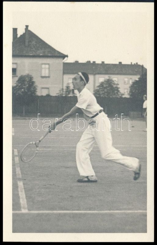 1943 Teniszező játék közben, fotó, 14×9 cm https://www.darabanth.com/hu/383-Gyorsarveres/383.0/Fotomuveszet/Foto~500020/1943-Teniszezo-jatek-kozben-foto-14C3979-cm~II2282452