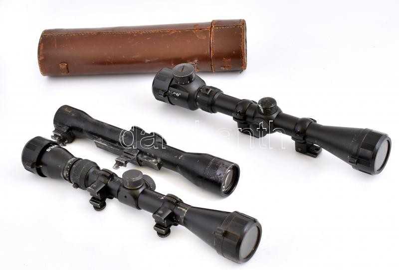 Leírás: 3 db vadászpuska távcső, kettő tokkal egyik Hubertus jelzéssel
