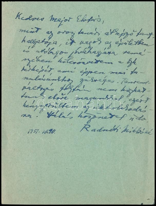 https://www.darabanth.com/hu/383-Gyorsarveres/383.0/Mutargy-papirregiseg-egyeb/Tortenelmi-dokumentumok-keziratok-erdekessegek~500018/1951-Radnoti-Miklosne-Gyarmati-Fanni-1912-2014-sajat-kezzel-irt-levele-egy-kolcsonvett-te~II2279481