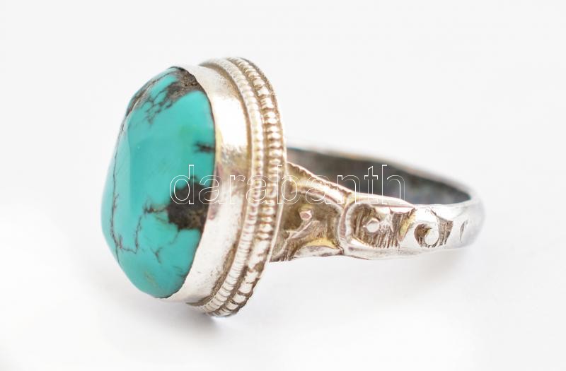 Leírás: Ezüst(Ag) gyűrű türkizes kővel, jelzés nélkül, méret: 58, bruttó: 6,32 g