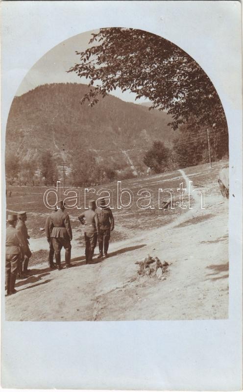1917 Sósmező, Poiana Sarata; Frigyes főherceg vizitel a magyar csapatoknál az ezeréves határ túlsó oldalán. Eredeti fotó / Archduke Friedrich, Duke of Teschen with Hungarian soldiers. photo