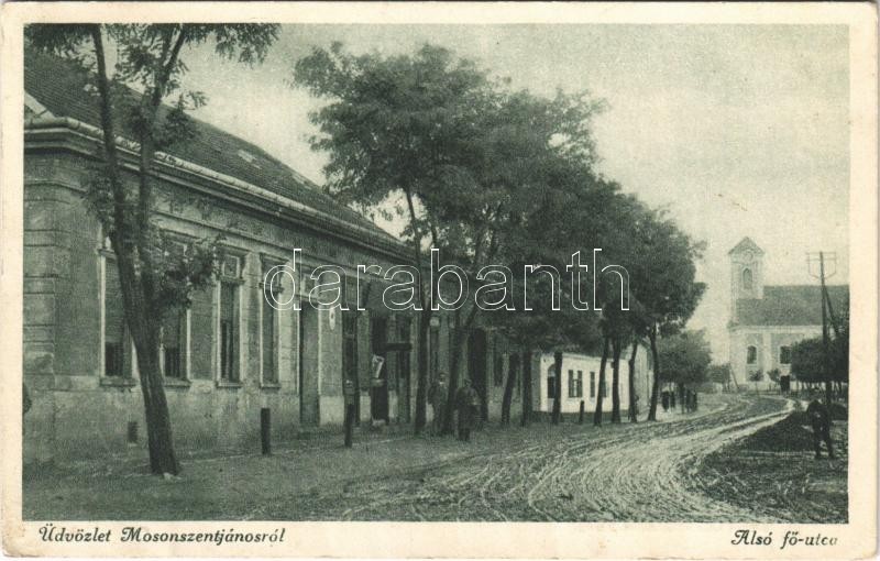 1928 Mosonszentjános, Jánossomorja; Alsó fő utca, üzlet, templom. Szil... https://www.darabanth.com/hu/385-Gyorsarveres/385.0/Kepeslapok/Magyarorszag~500005/1928-Mosonszentjanos-Janossomorja-Also-fo-utca-uzlet-templom-Szilagyi-Artur-muintezete~II2306344