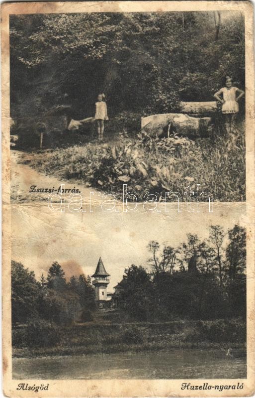Alsógöd (Göd), Zsuzsi-forrás, Huzella nyaraló, villa (fa) https://www.darabanth.com/hu/385-Gyorsarveres/385.0/Kepeslapok/Magyarorszag~500005/Alsogod-God-Zsuzsi-forras-Huzella-nyaralo-villa-fa~II2304739