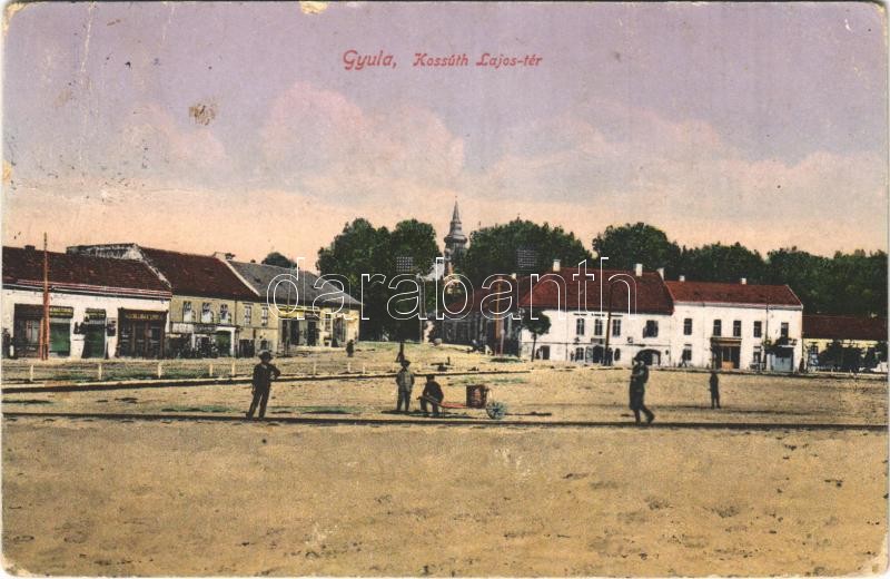 Gyula, Kossuth Lajos tér, üzletek (Rb) https://www.darabanth.com/hu/385-Gyorsarveres/385.0/Kepeslapok/Magyarorszag~500005/Gyula-Kossuth-Lajos-ter-uzletek-Rb~II2302189