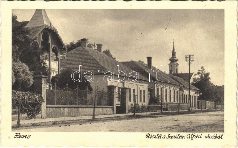 Heves, Szerelem Alfréd utca https://www.darabanth.com/hu/385-Gyorsarveres/385.0/Kepeslapok/Magyarorszag~500005/Heves-Szerelem-Alfred-utca~II2303613