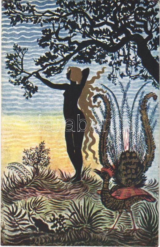 Leírás: Menura Superba / Polish Art Nouveau golden art postcard. Anczyc Sylwety 17. s: St. Eljasz Radzikowski