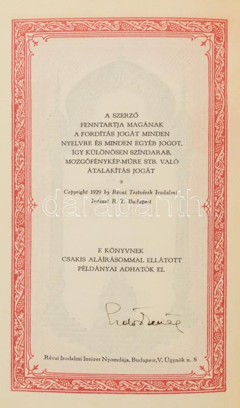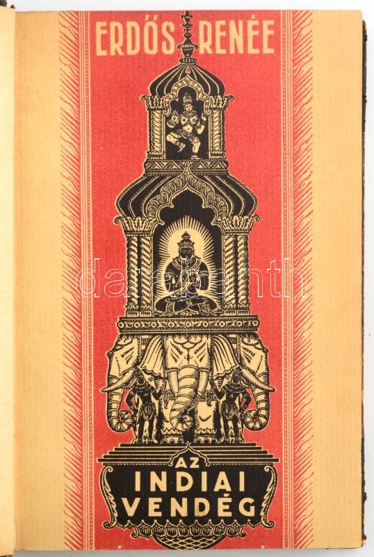 Erdős Renée: Az indiai vendég. Typografálta és a könyvdíszeket rajzolta: Kner Albert. Bp., 1929, Révai. Korabeli álbordás, aranyozott gerincű félbőr-kötésben, az eredeti elülső papírborítót bekötötték, kopott borítóval. A szerző által aláírt.