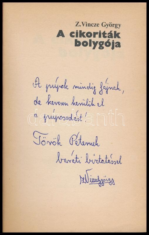 Z. Vincze György: A cikoriták bolygója. Dedikált. Bp., 1985. Ifjúsági,... https://www.darabanth.com/hu/385-Gyorsarveres/385.0/Konyvek/Konyvek-Egyeb-ritkasagok~1000052/Z-Vincze-Gyorgy-A-cikoritak-bolygoja-Dedikalt-Bp-1985-Ifjusagi-Kiadoi-papirkotesbe~II2305575