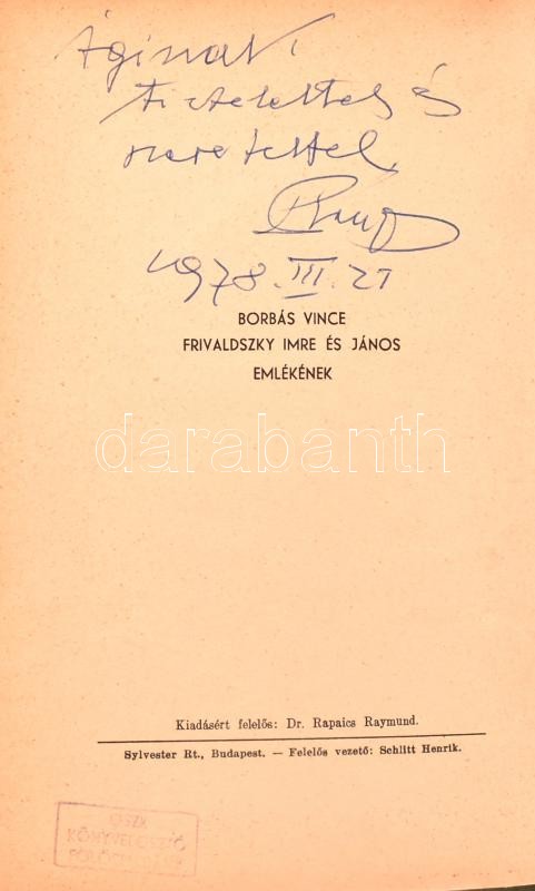 Leírás: Pénzes Antal: Budapest élővilága. Bp., 1942, Kir. Magyar Természettudományi Társulat. Kiadói félvászon kötésben, ajándékozói bejegyzéssel.